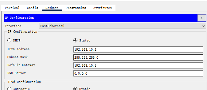 给Pc2配置IP和网关: