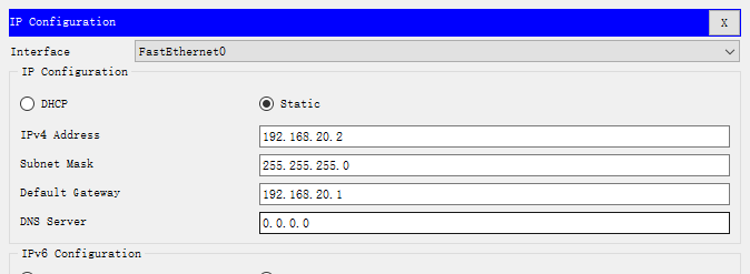 Switch(config-if)# ip ad 192.168.20.1 255.255.255.0